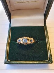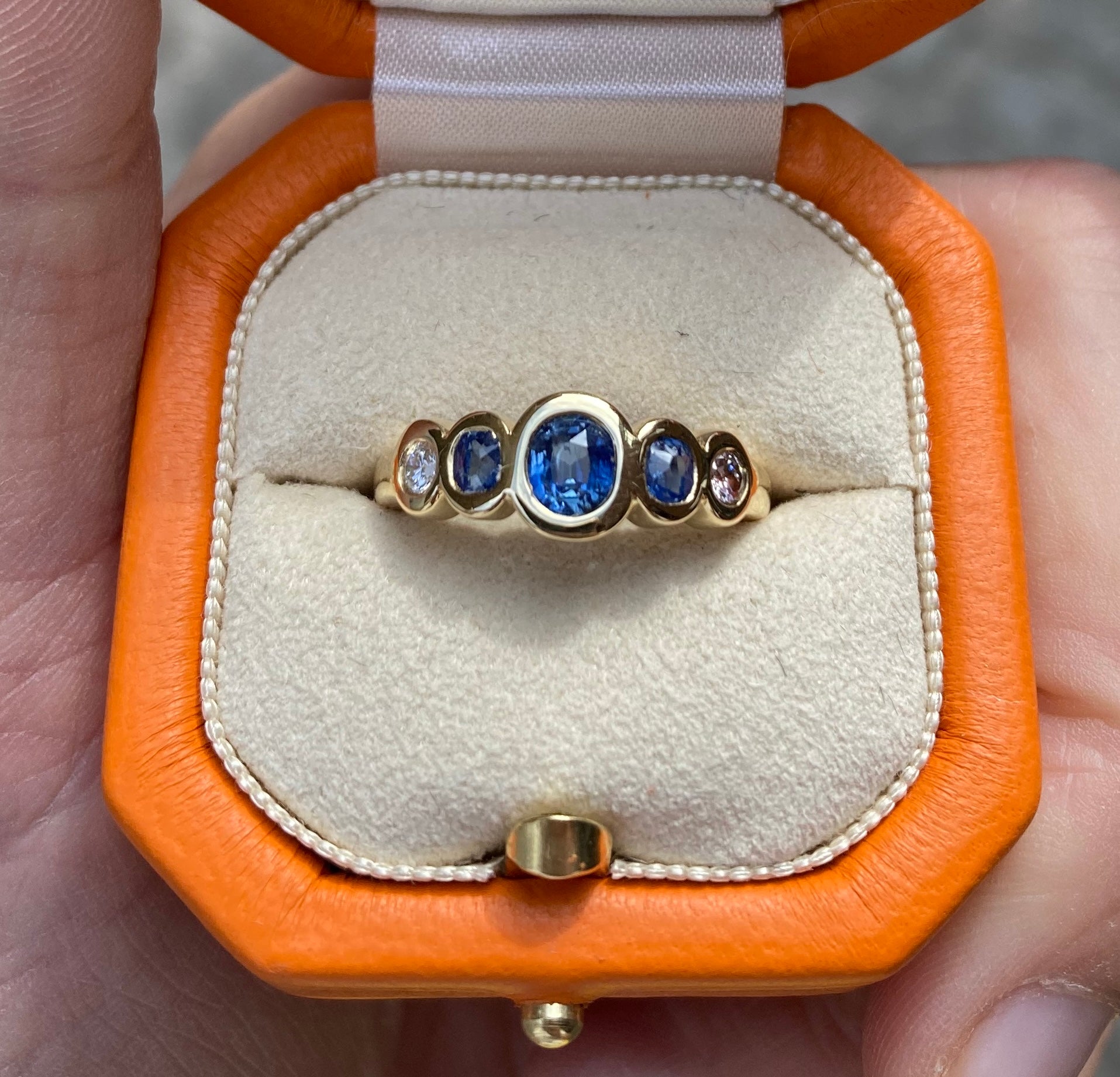 3 Ceylon Sapphires from a client's preloved ring and two round brilliant Diamonds set in a handmade 18 carat gold ring.